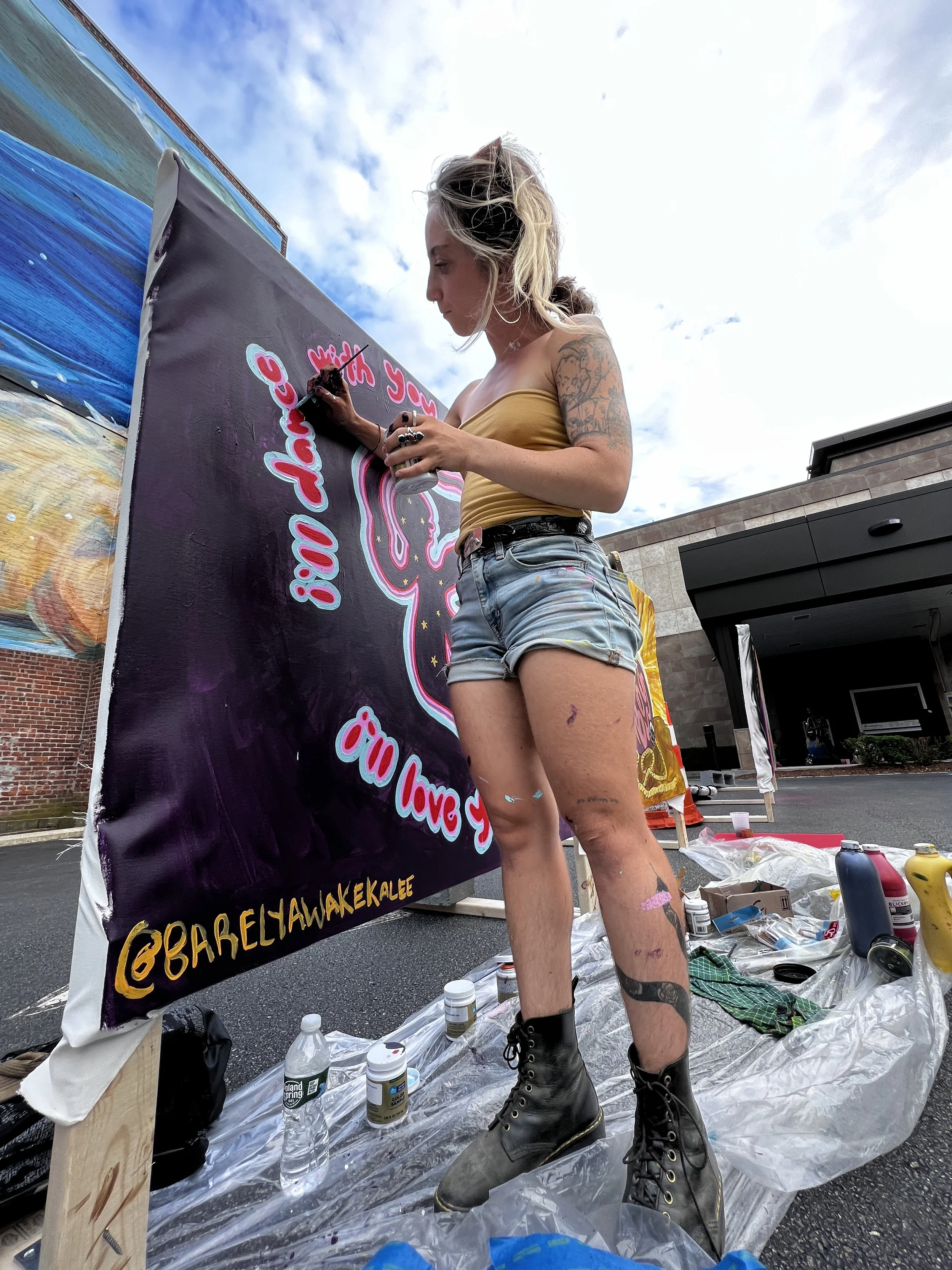 I am a full-time painter who creates large-scale and vibrant murals who has over 20 murals under my belt! My use of bold colors, flowing line work, and playful characters transform walls into immersive experiences. I am most-known and recognized for my psychedelic flowers and otherworldly, four-eyed characters.